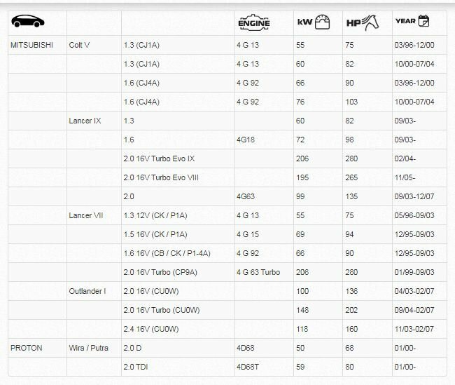 | Модель автомобиля | Great Wall Safe / Mitsubishi Airtrek / Mitsubishi Colt / Mitsubishi Lancer / Mitsubishi Outlander / Proton Wira |
