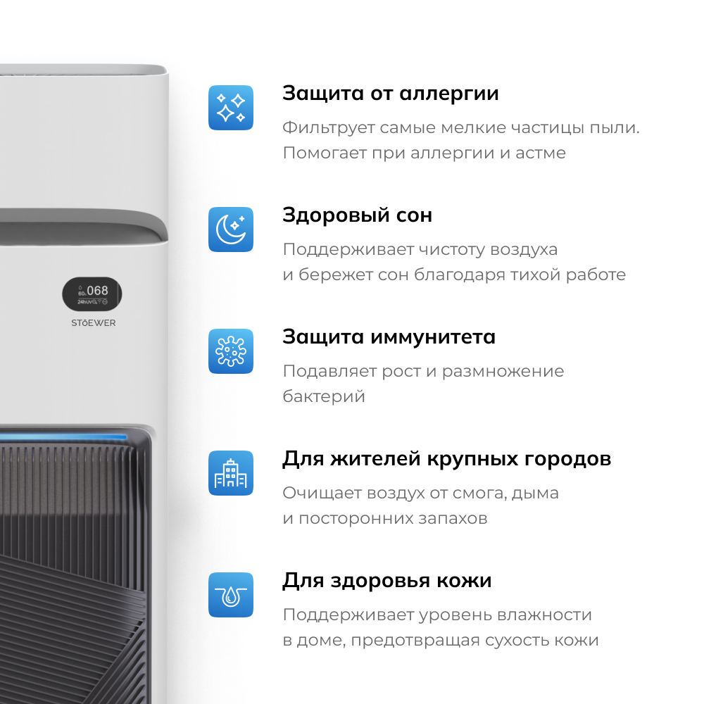 Отзывы на Умный климатический комплекс STOEWER штоер Air Wash X12 очиститель-увлажнитель воздуха, бесшумный, для аллергиков