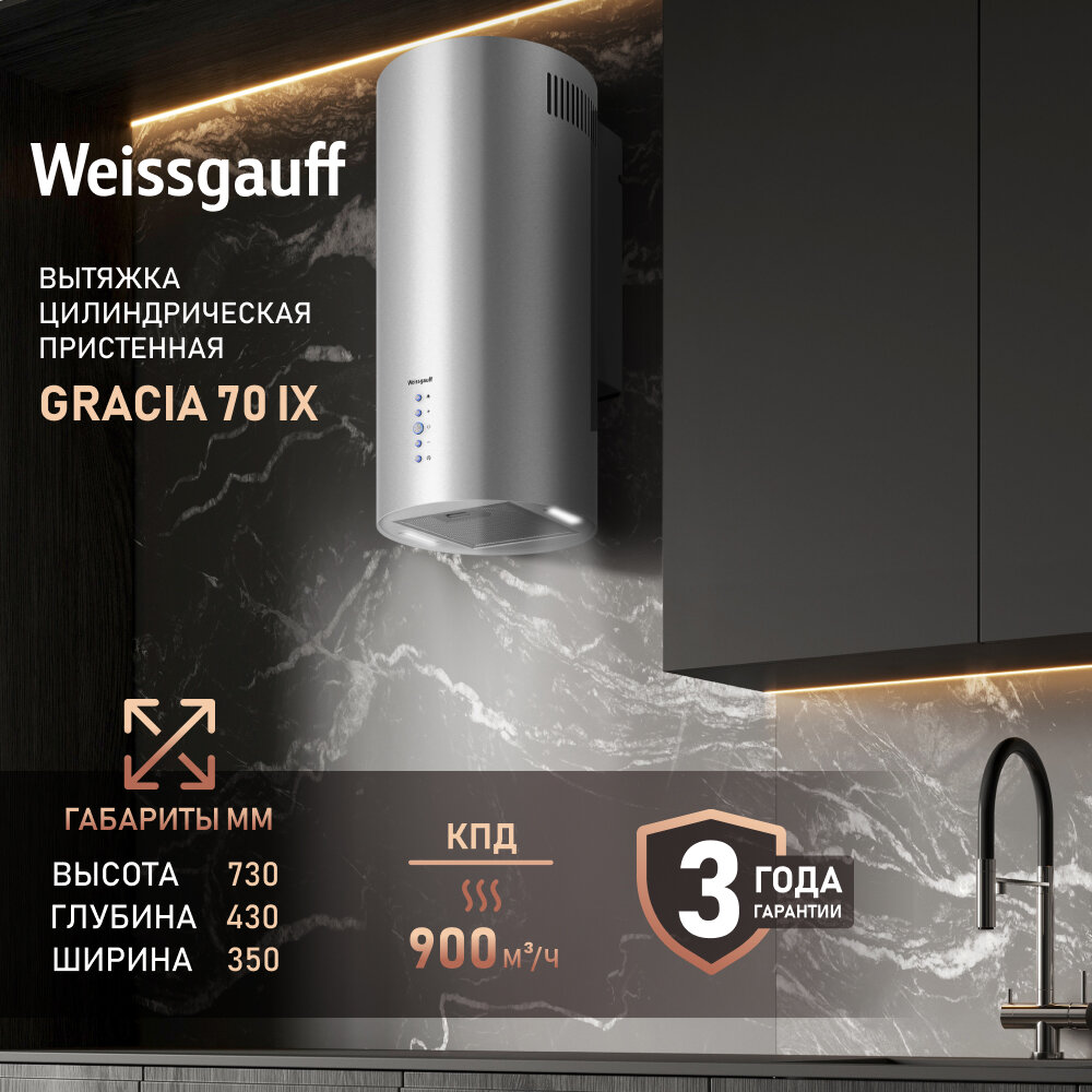 10 цен на Вытяжка цилиндрическая пристенная Weissgauff Gracia 70 IX, Низкий уровень шума