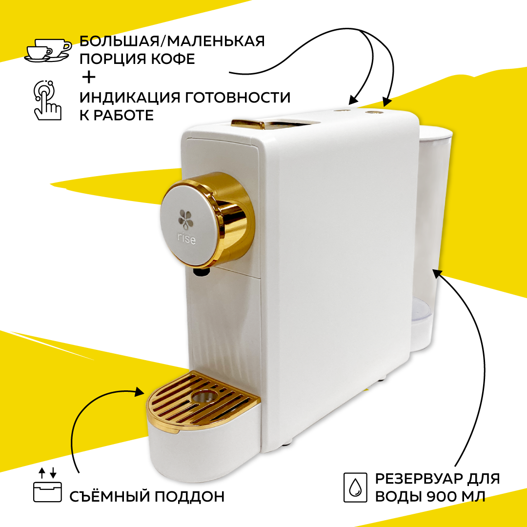 Кофемашина капсульная RISE, белая, под капсулы Nespresso, сенсорное управление, 19 Бар информация: