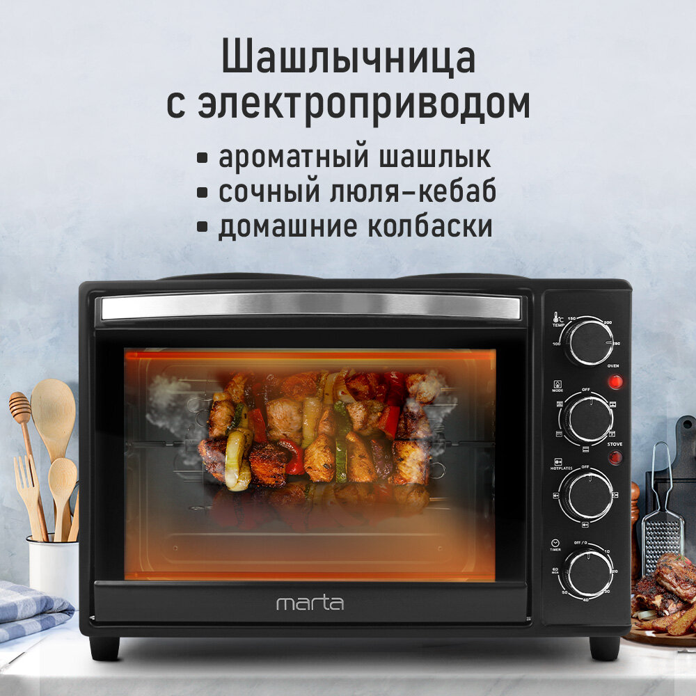 Мини-печь MARTA MT-EO4288A (30 литров, сенсор+конвекция+шашлычница+вертел) черный жемчуг