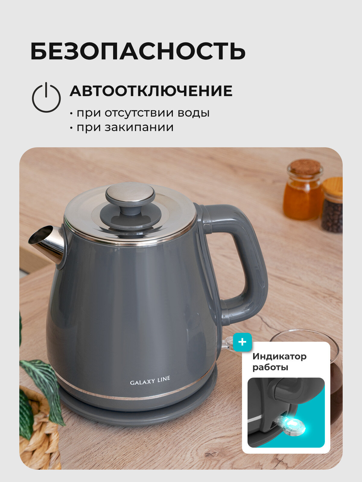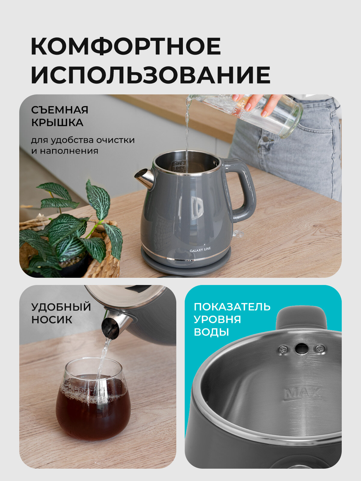 10 цен на Чайник электрический Galaxy Line GL0331, 2200Вт, 1,8л, металл/пластик, серый