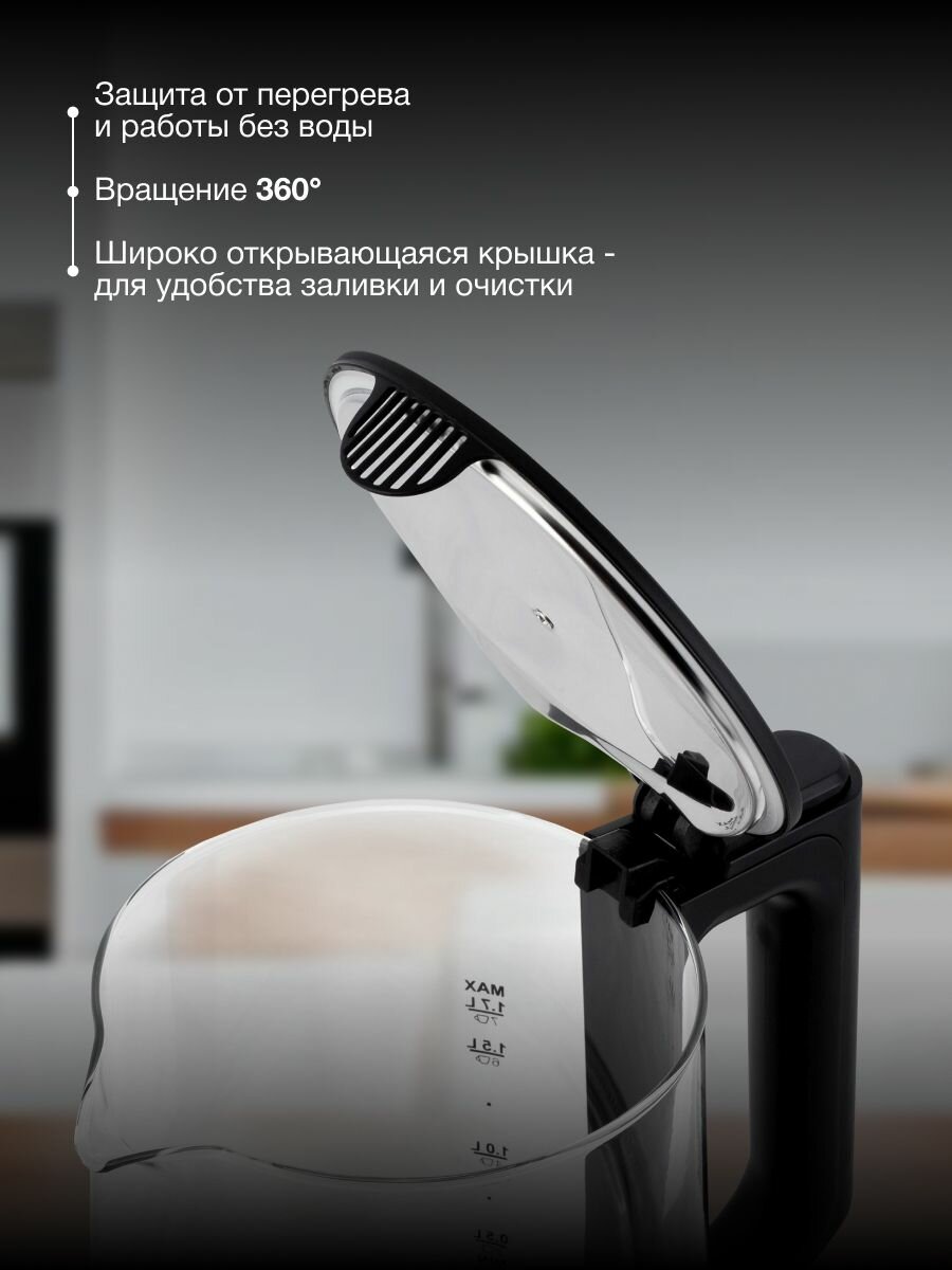 | Дополнительная информация | В чайнике используется высококачественное боросиликатное стекло, легкое, прочное, не темнеет и не окрашивается со временем. Красивая голубая LED подсветка украшает процесс закипания и оповещает о включении прибора. |