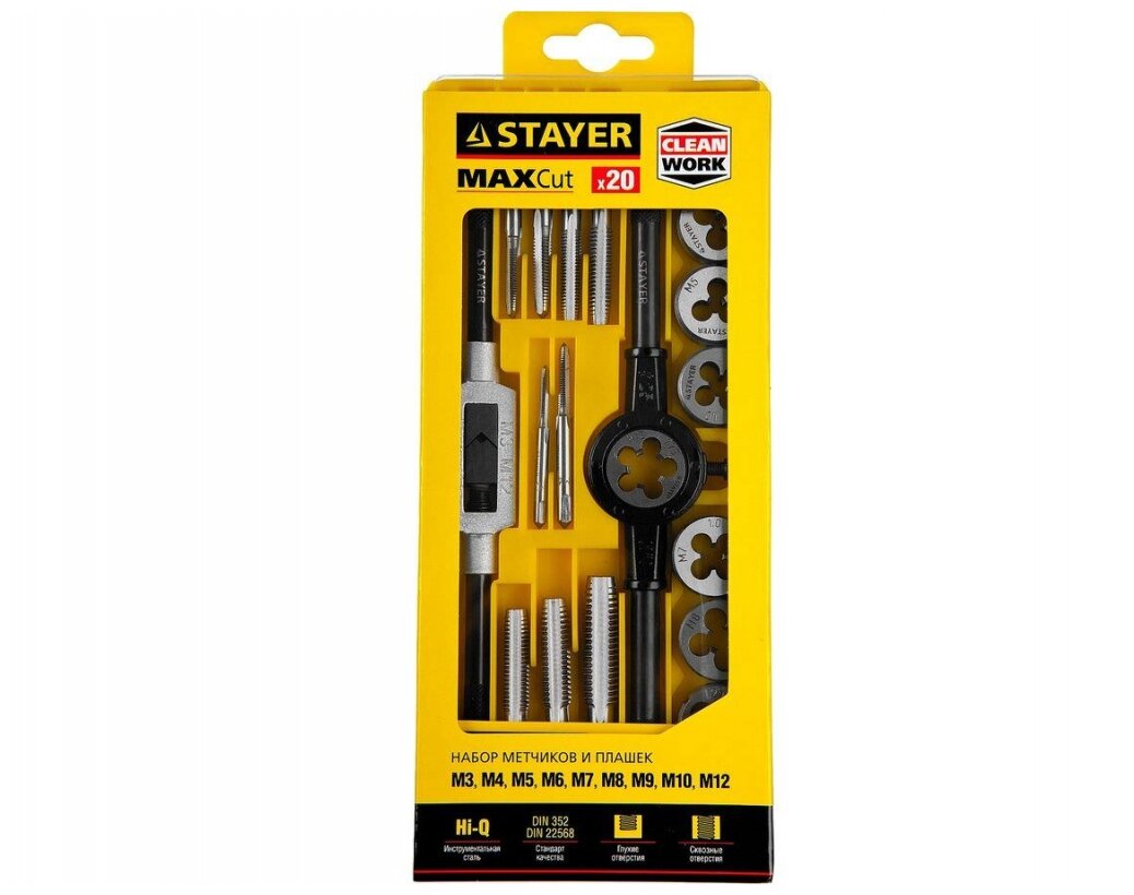 STAYER MaxCut 20 предметов, набор метчиков и плашек, легированная сталь 28012-H20