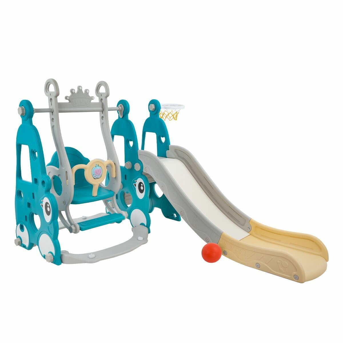 Горка детская с качелями Pituso Замок, игровой комплекс 3 в 1 с баскетбольным кольцом, цвет синий