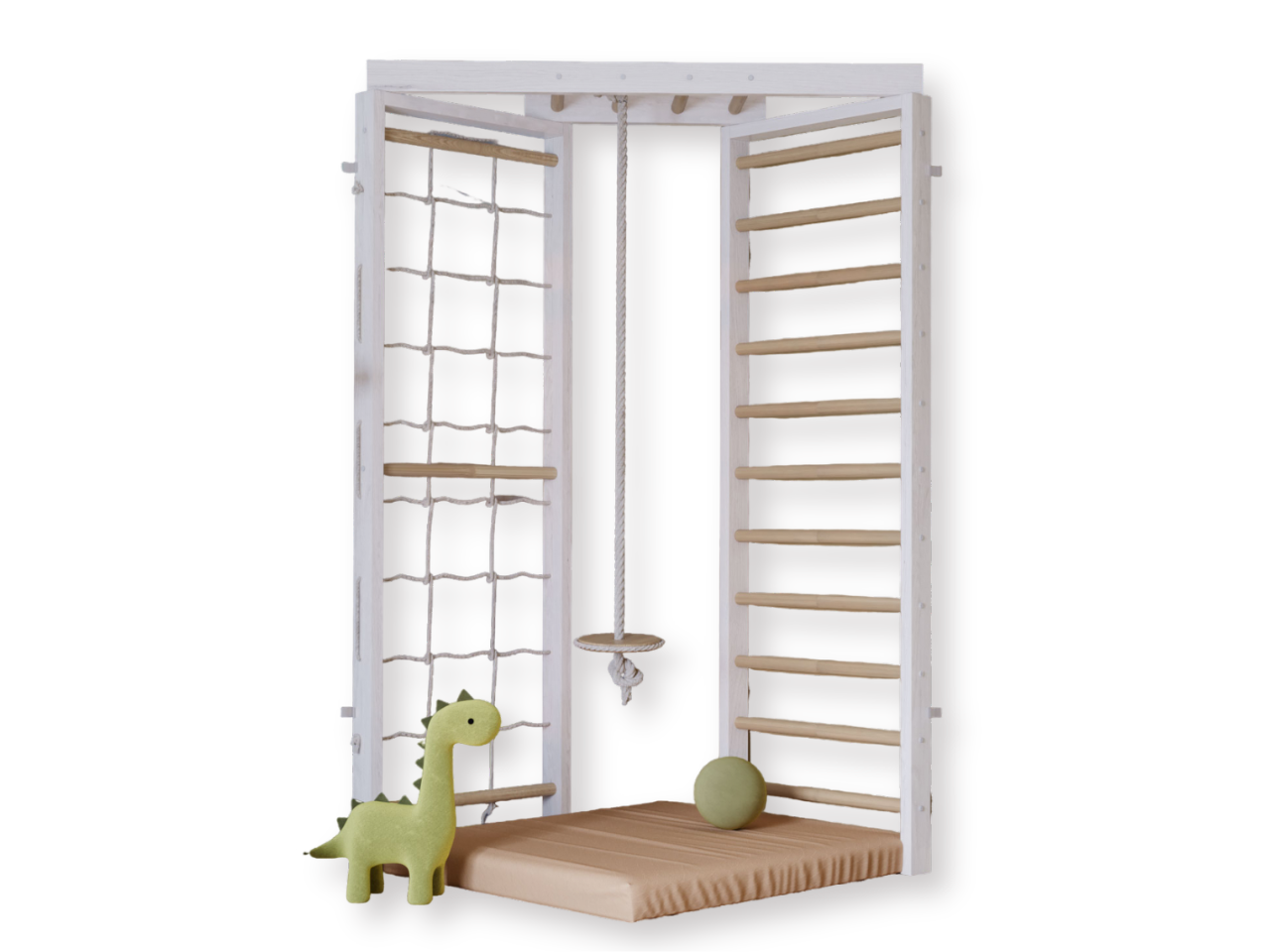 Шведская стенка комплект 3 в 1 с сеткой для лазания KidPoint S1 белый информация: