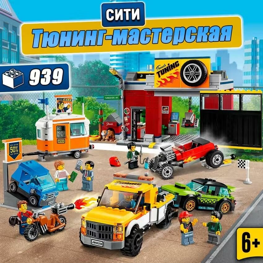 10 цен на Конструктор Сити Тюнинг-мастерская, 939 деталей.
