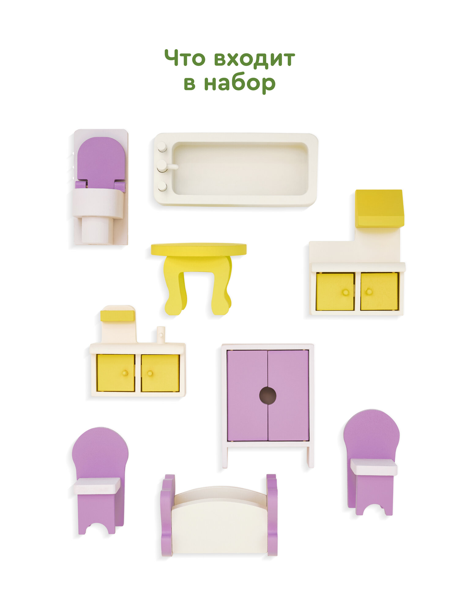 10 цен на Деревянный кукольный домик JUNION Вилла Лива, 60х27х70 см, 5 комнат, мебель в комплекте