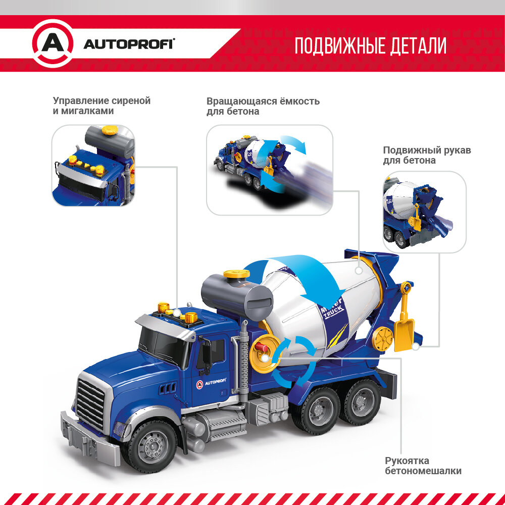 10 цен на Машинка "Бетономешалка", инерционная, с подвижными деталями,35см, CA-035/MIXR, свет, звук, (игрушки для мальчиков)