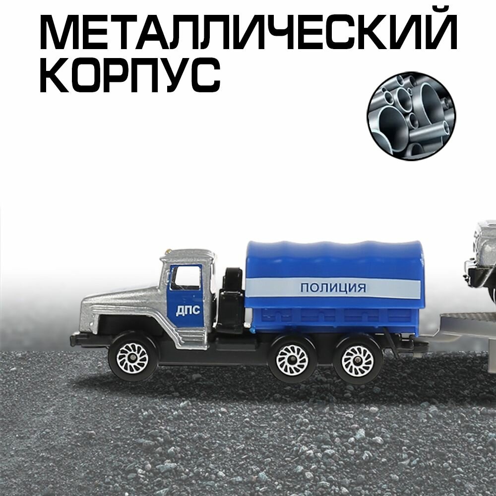 Машинка детская Полицейский Автотранспортер с прицепом и УАЗ, Технопарк, набор, размер машинок 7.5 см, металлическая кабина информация:
