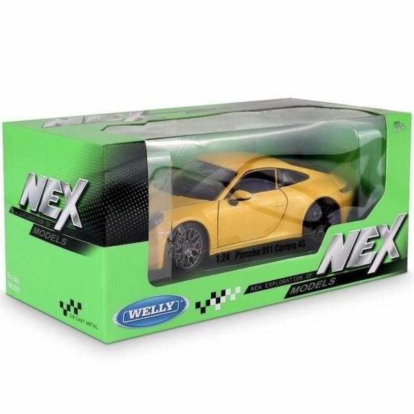 Машинка WELLY 1:24 Porsche 911 Carrera S4, желтый информация: