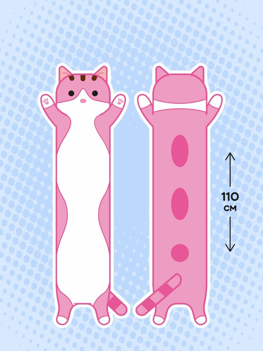 Длинный кот 90см / Плюшевая игрушка Кот-батон, розовый 1 100 ₽