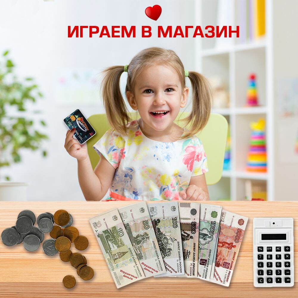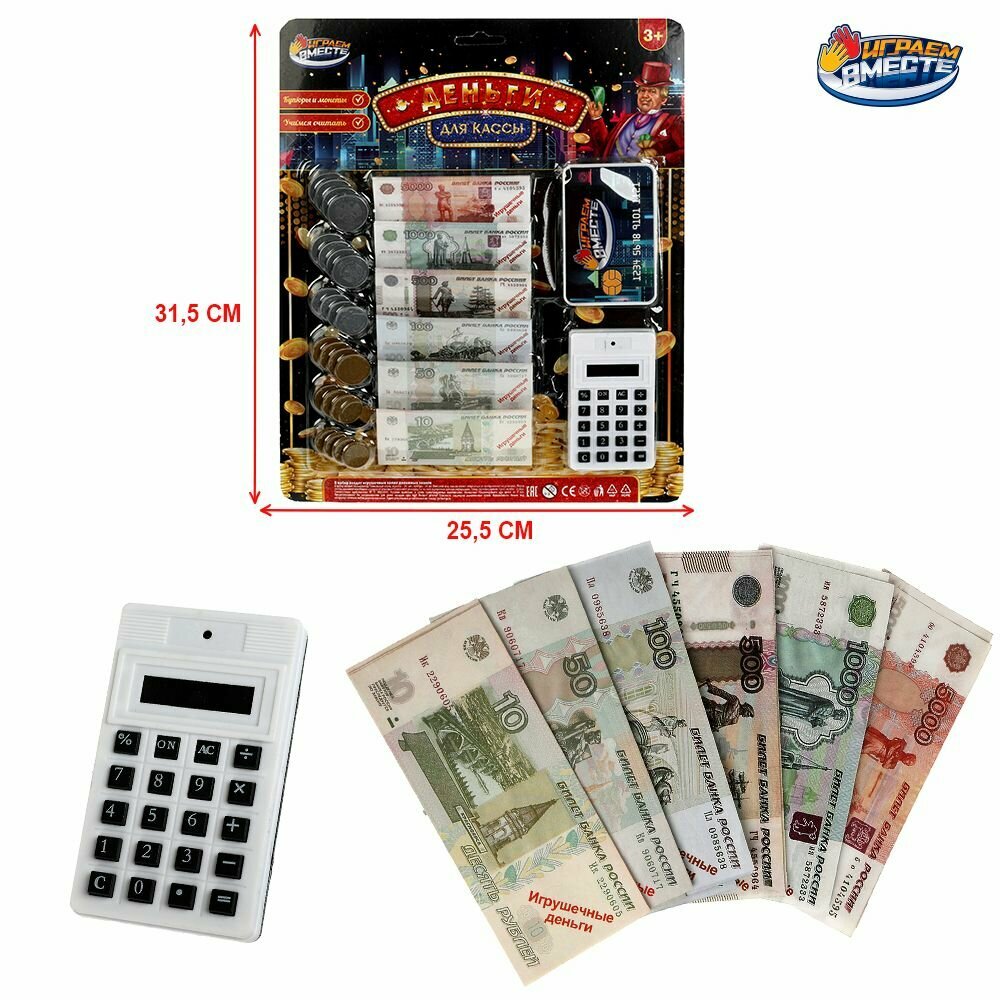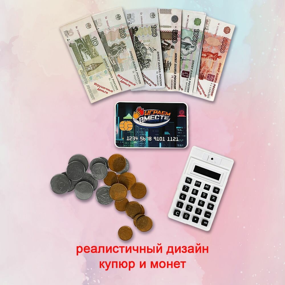 Игрушечные деньги набор с калькулятором и банковской картой Играем вместе / касса детская информация: