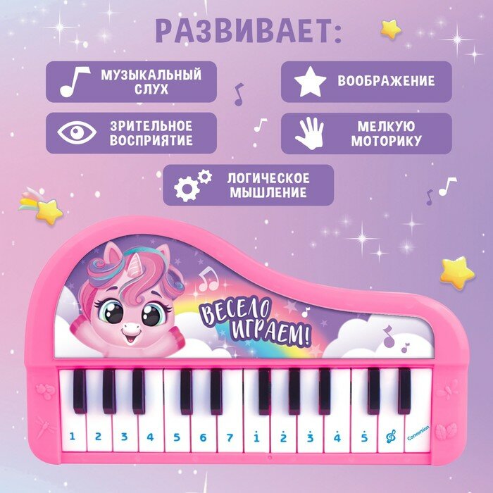 Музыкальное пианино детское «Чудесные пони», звук, цвет розовый информация: