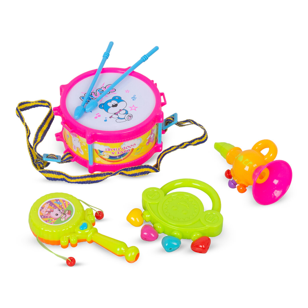 | Комплектация | барабан 1 шт., барабанные палочки 2 шт., гитара 1шт., дудочка 1 шт., саксофон 1 шт., погремушка 1 шт. |