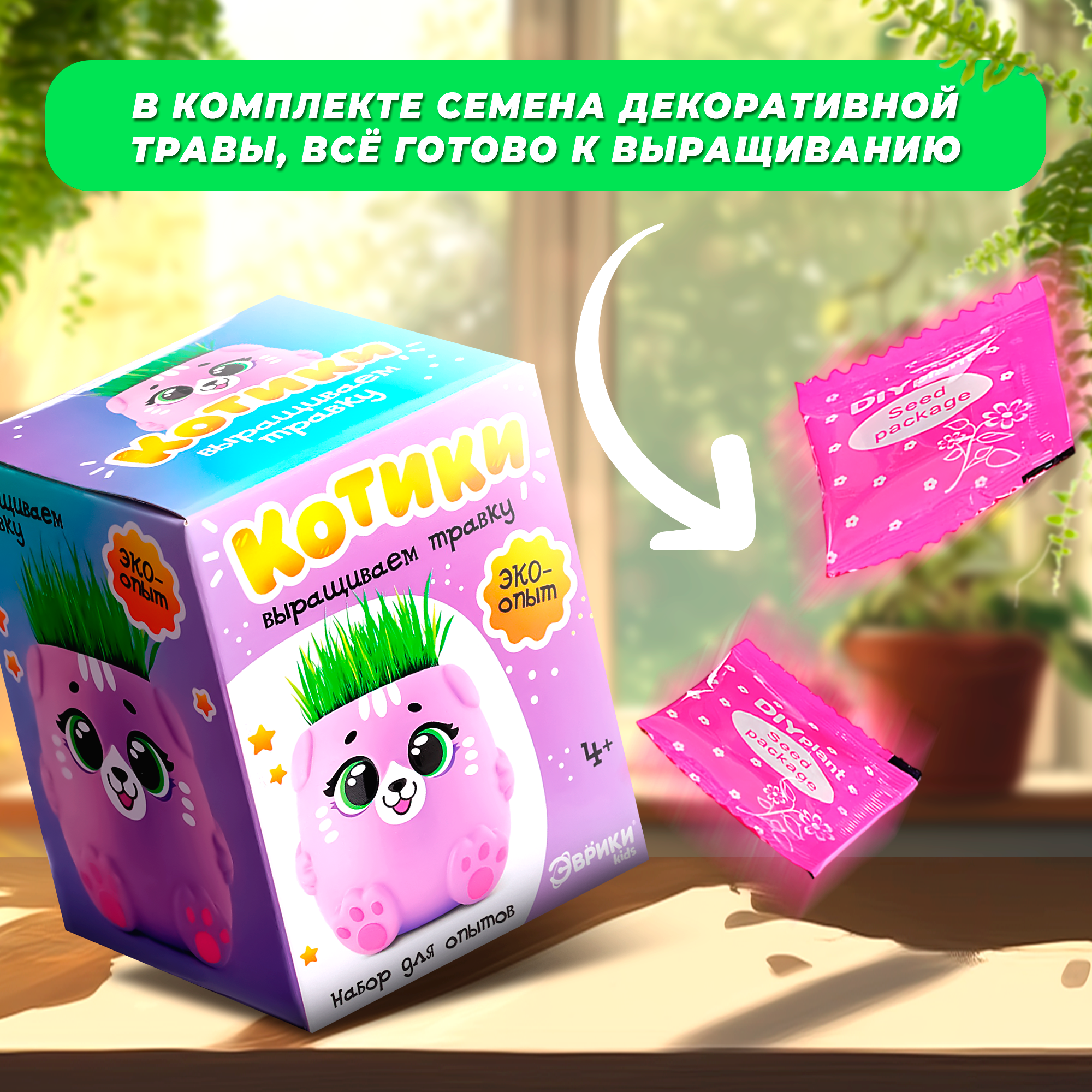 Набор для опытов "Милый садик. Кошечка", выращиваем травку, для детей и малышей, Эврики Creative