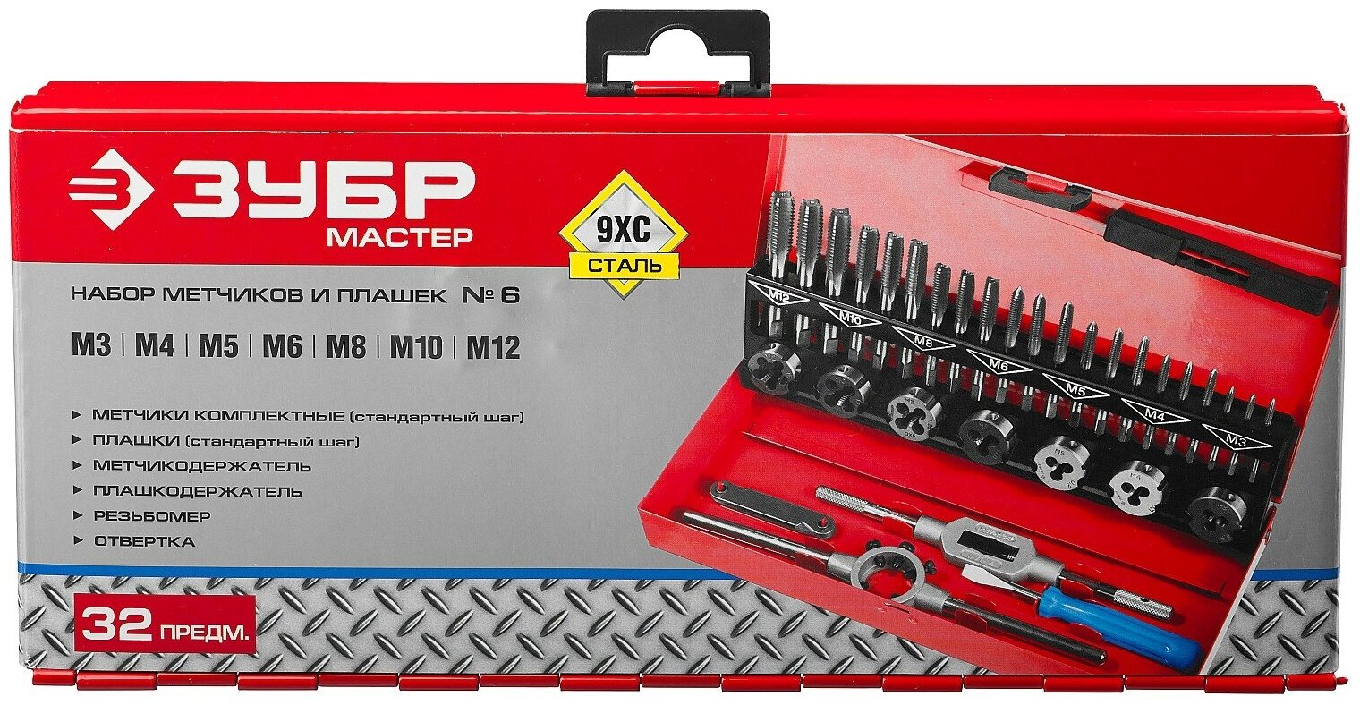 10 цен на Зубр Набор метчиков и плашек "мастер", сталь 9ХС, 32 предмета 28129-H32 z01