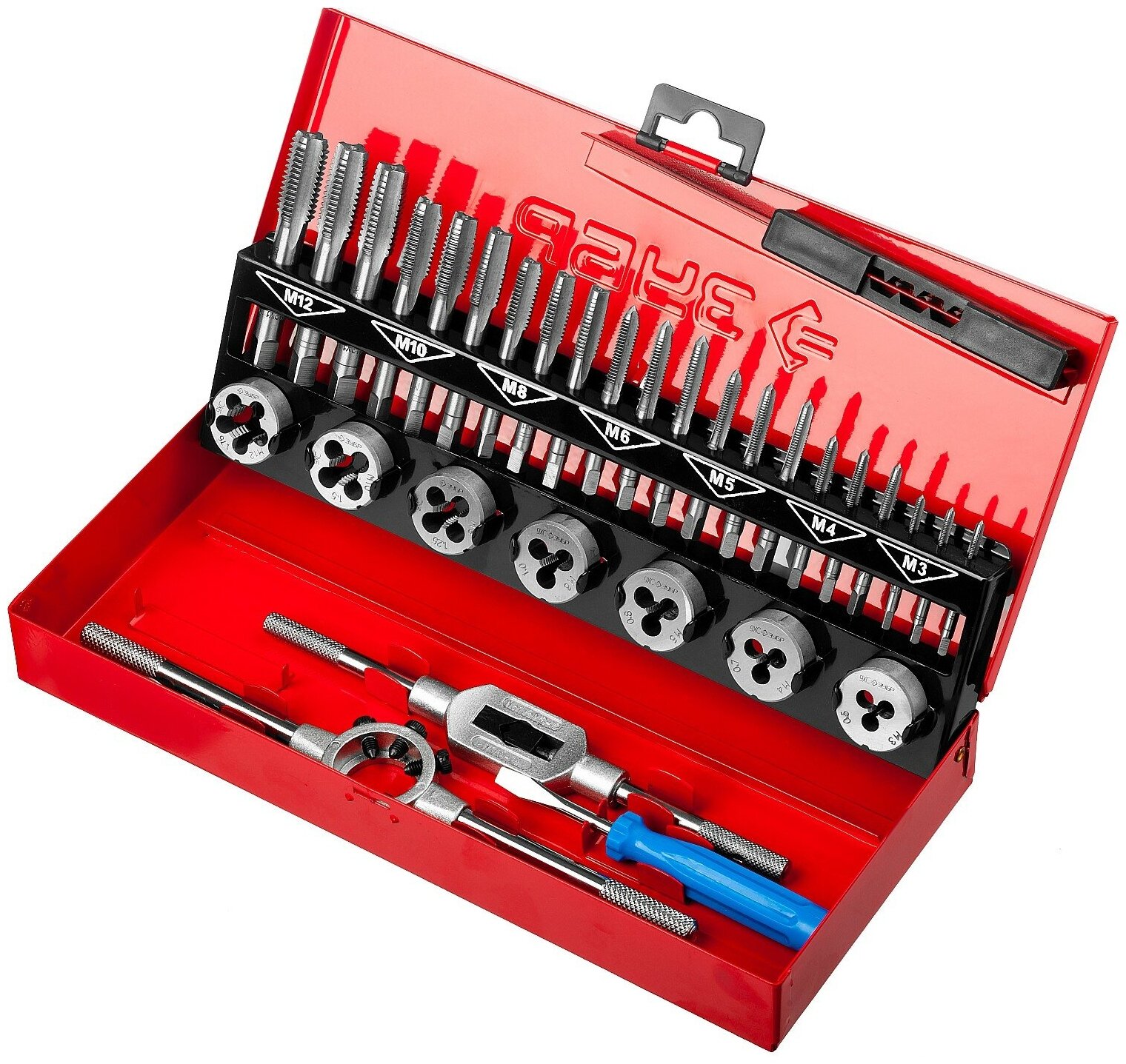 Набор комплектных метчиков и плашек в металлическом боксе ЗУБР 28129-H32_z01 серия мастер 3 900 ₽