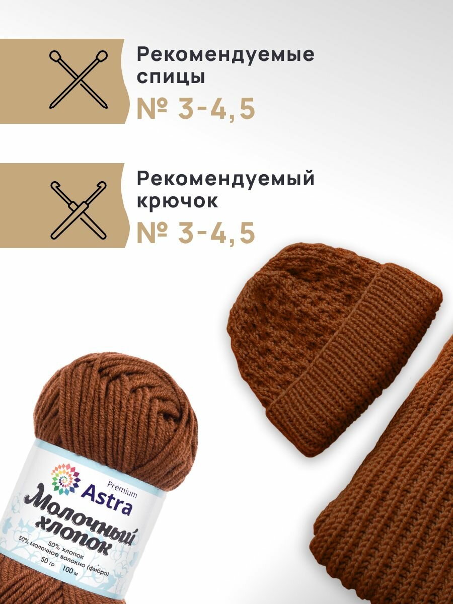 Пряжа для вязания Astra Premium 'Молочный хлопок' 50г, 100м (хлопок, молочный акрил) (56 молочный шоколад), 3 мотка информация: