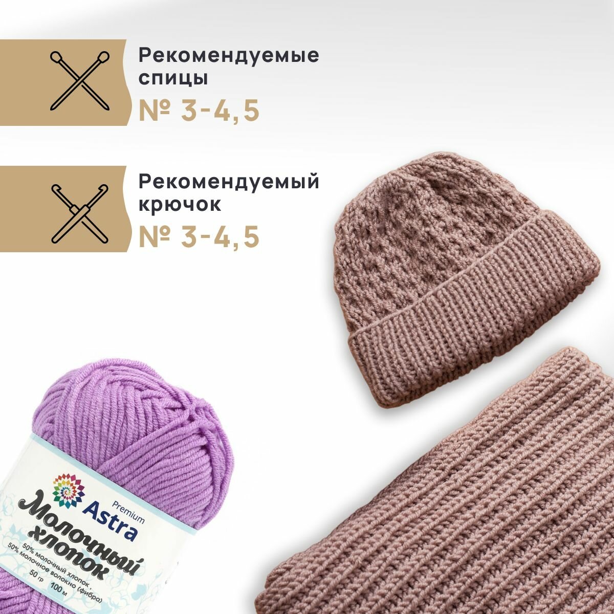 Отзывы на Пряжа для вязания Astra Premium 'Молочный хлопок' 50г, 100м (хлопок, молочный акрил) (65 сиреневый), 3 мотка