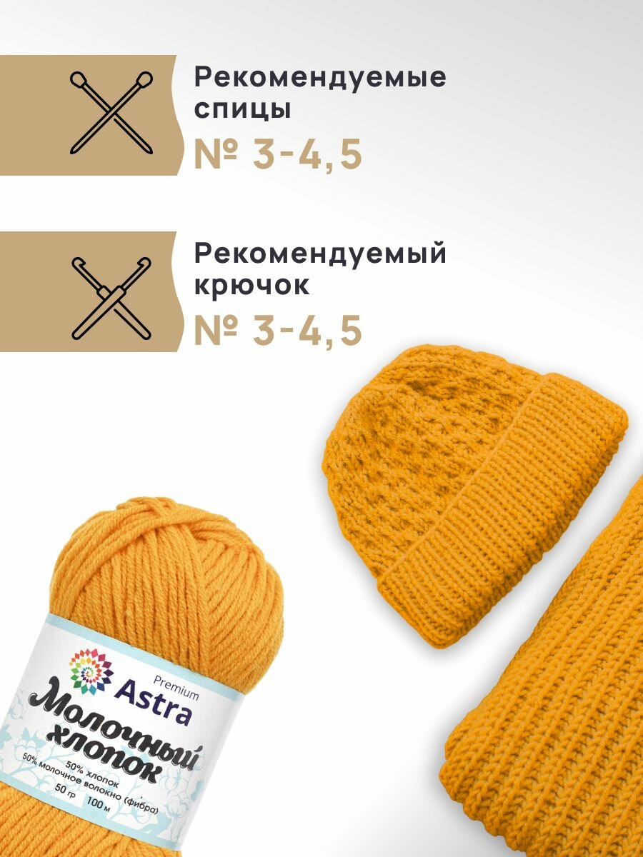 Пряжа для вязания Astra Premium 'Молочный хлопок' 50г, 100м (хлопок, молочный акрил) (34 горчичный), 3 мотка информация: