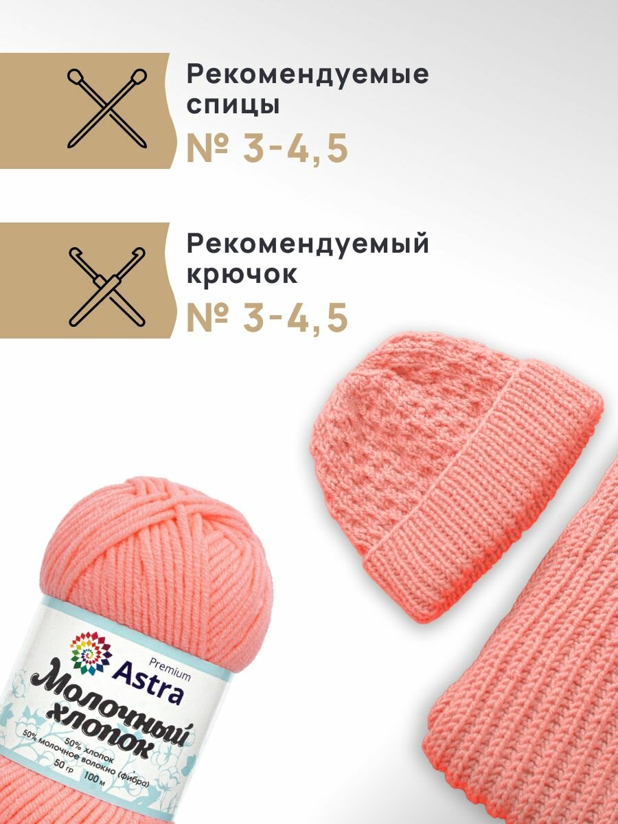 Пряжа для вязания Astra Premium 'Молочный хлопок' (Milk Cotton) 50гр 100м (+/-5%) (50% хлопок, 50% молочный акрил) (03 светло-коралловый), 3 мотка 480 ₽