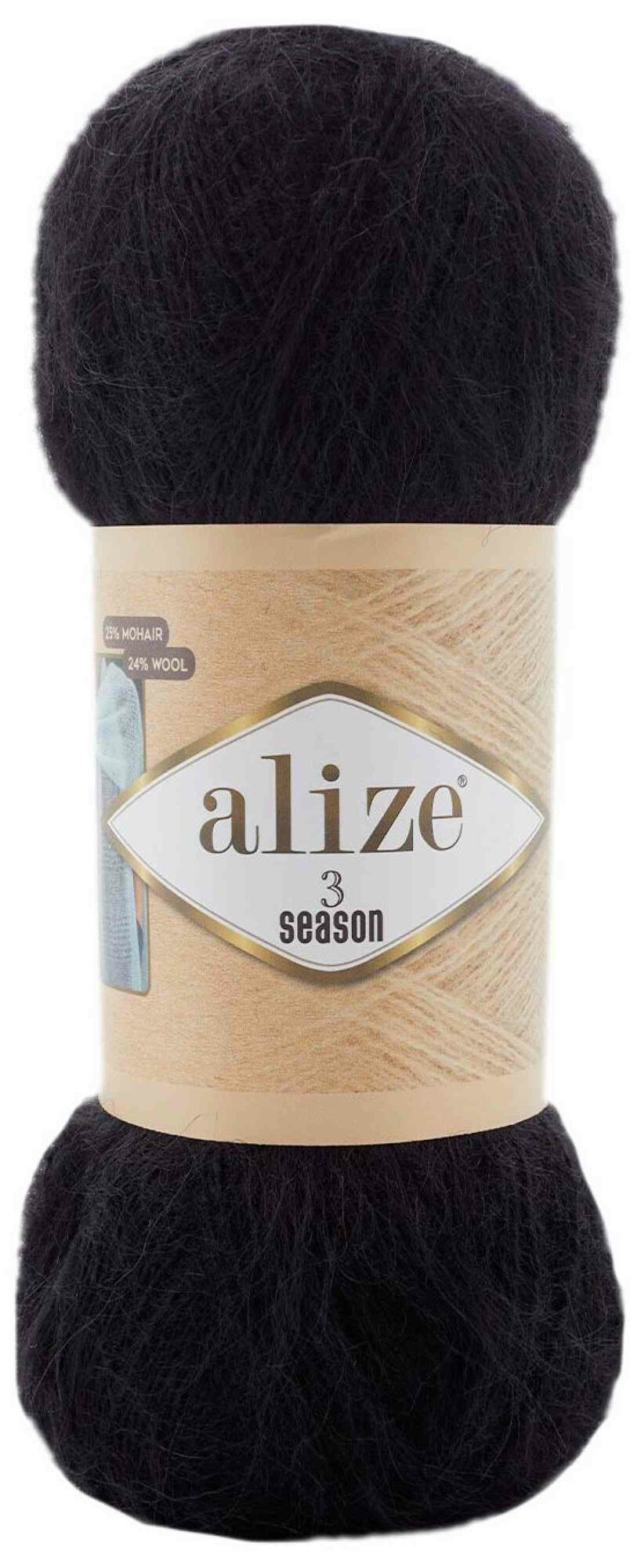 Пряжа Alize 3 Season черный (60), 25%мохер/24%шерсть/51%акрил, 500м, 100г, 3шт информация: