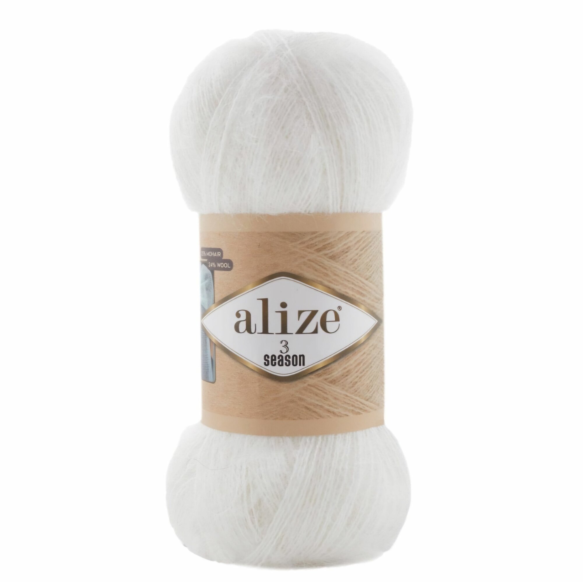 Пряжа ALIZE 3 Season: 55 (белый), 3 шт 500м 100г, 25% мохер, 24% шерсть, 51% акрил информация: