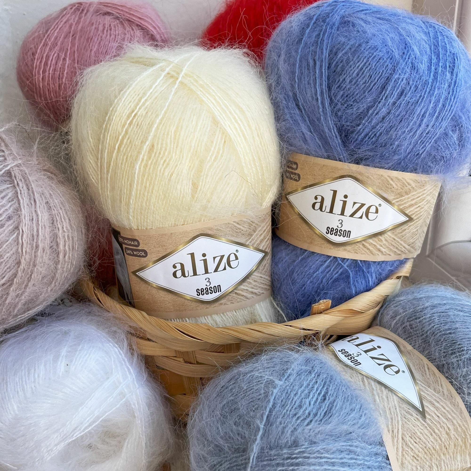 Пряжа для вязания ALIZE '3 SEASON', 100г, 500м (25% мохер, 24% шерсть, 51% акрил) (40 голубой), 5 мотков 2 203 ₽