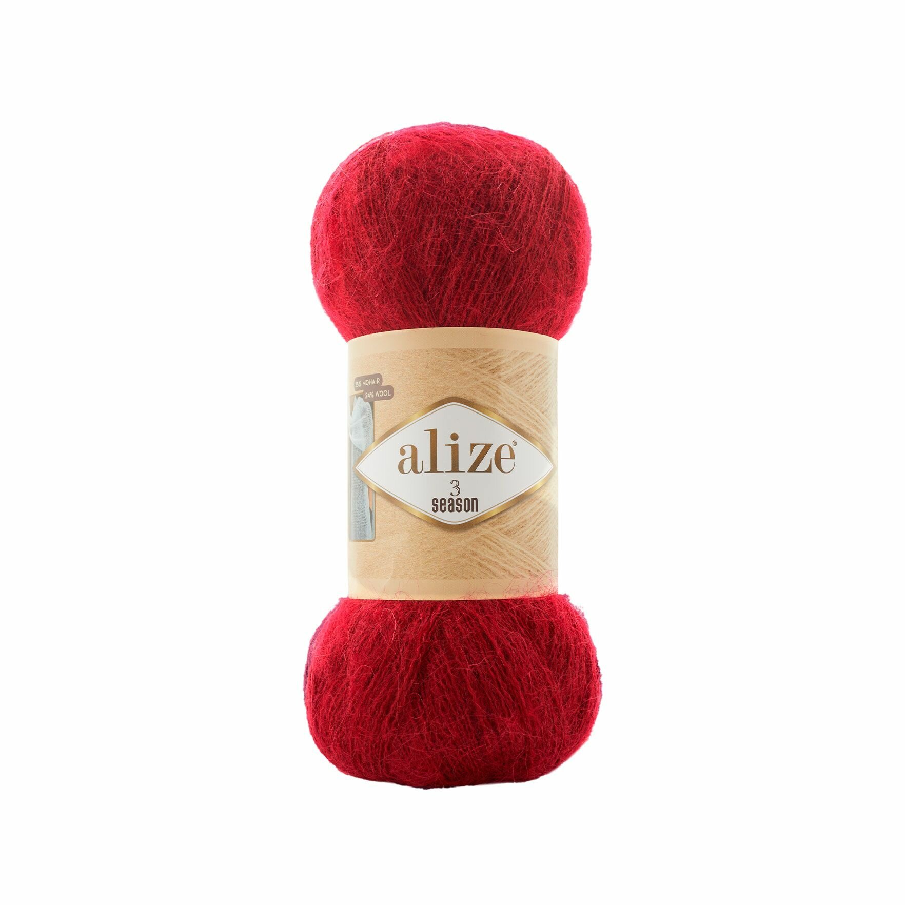 Пряжа для вязания ALIZE '3 SEASON', 100г, 500м (25% мохер, 24% шерсть, 51% акрил) (56 красный), 5 мотков 1 967 ₽