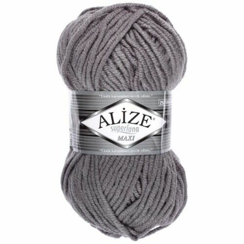 Пряжа Alize Superlana Maxi угольный серый (87), 25%шерсть/75%акрил, 100м, 100г, 1шт