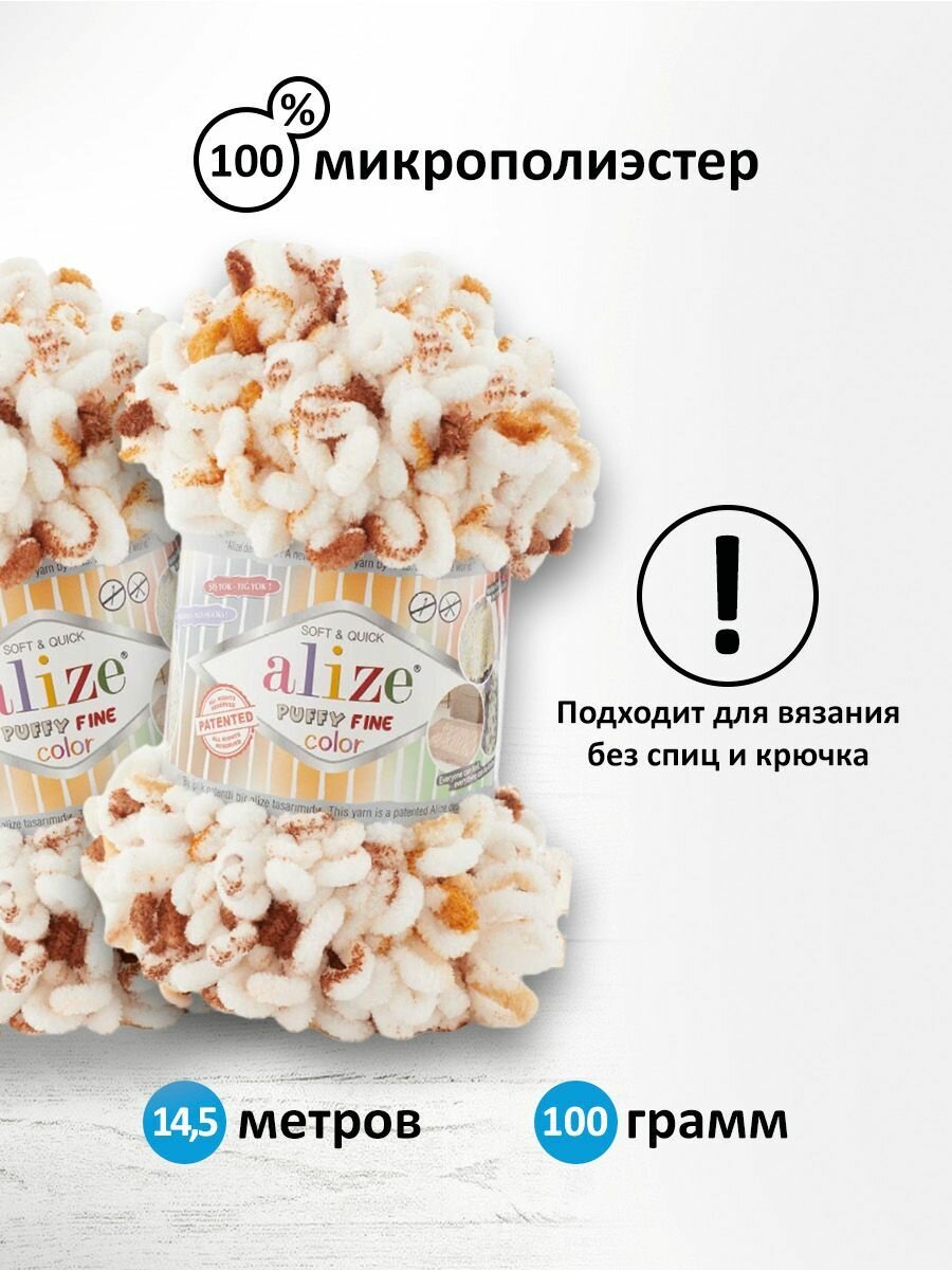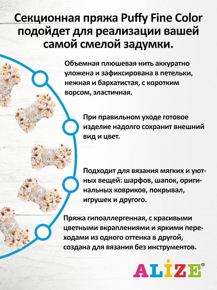 Пряжа для вязания руками с готовыми петлями ALIZE 'Puffy Fine Color' 100г, 14,5м (7502 секционный), 5 мотков информация:
