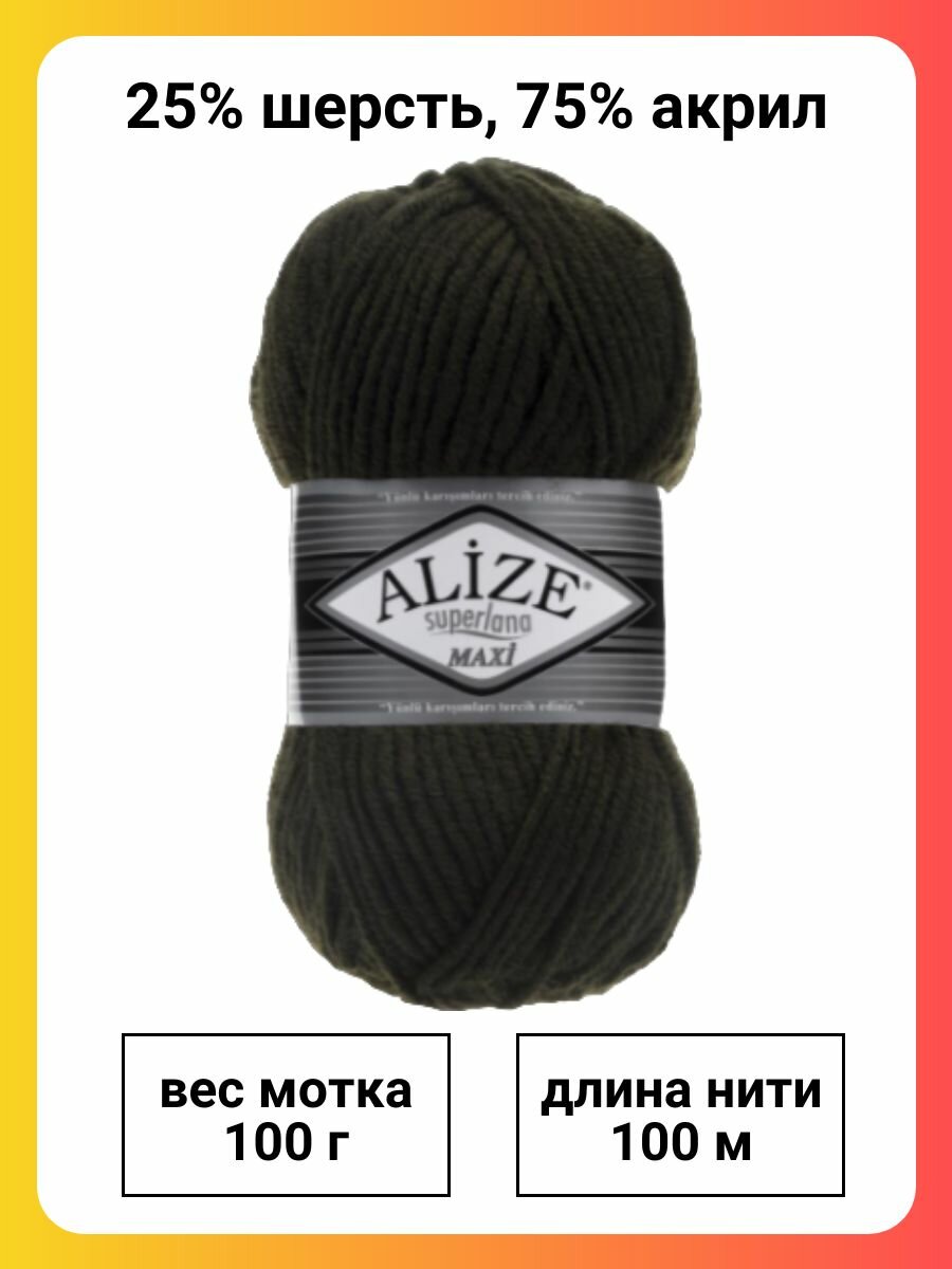 Пряжа для вязания ALIZE 'Superlana maxi', 100г, 100м (75% акрил, 25% шерсть), ТУ (620 оливковый), 5 мотков