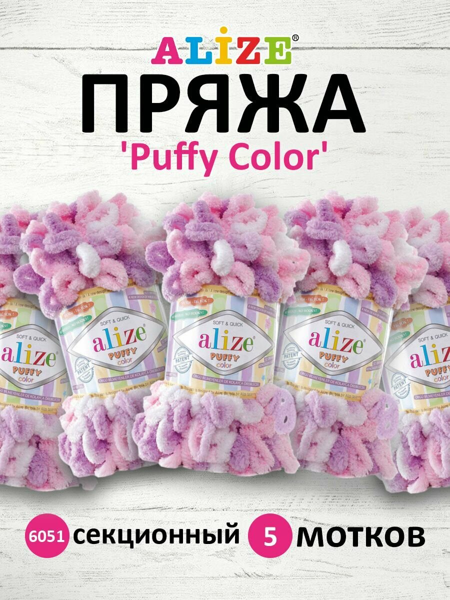 Пряжа для вязания ALIZE 'Puffy Color', 100г, 9м (100% микрополиэстер) (6051 секционный), 5 мотков