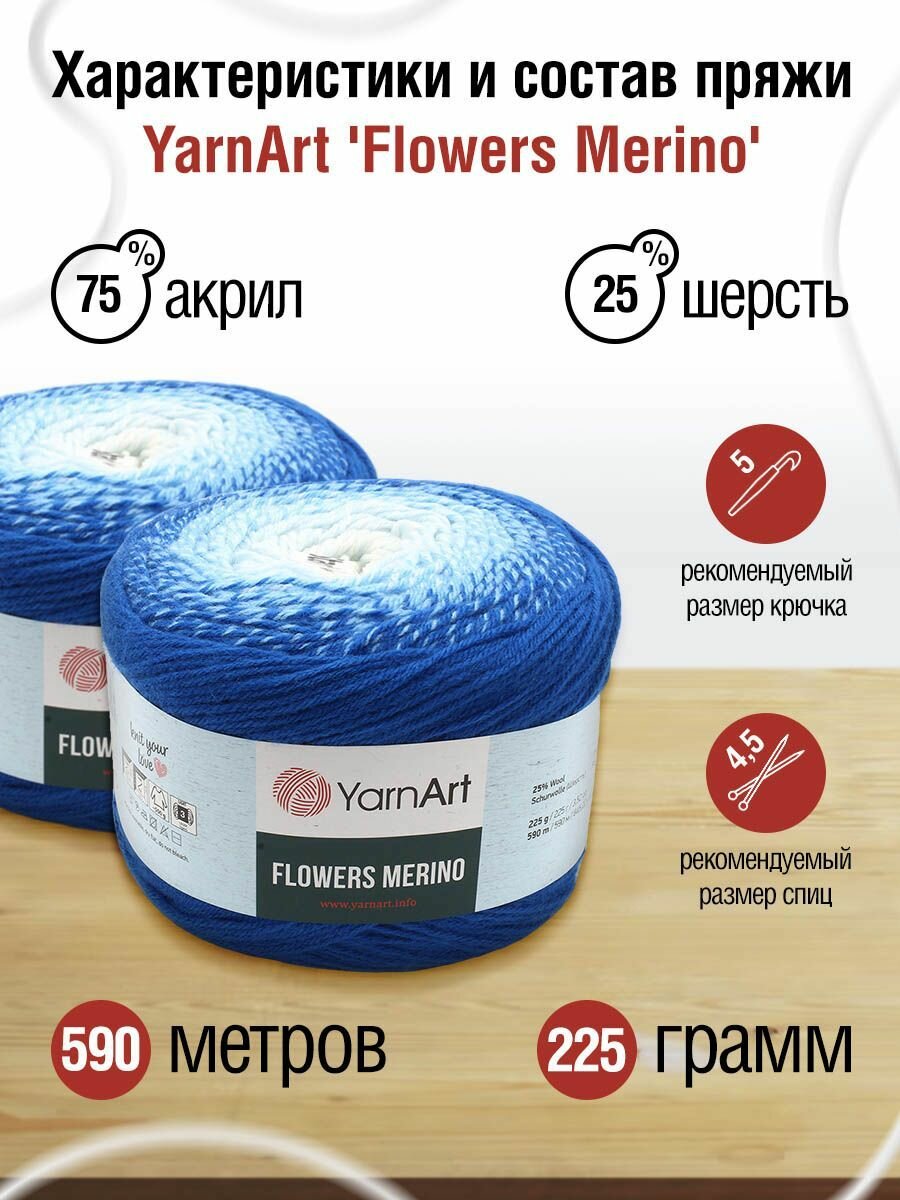 Пряжа для вязания YarnArt 'Flowers Merino' 225г, 590м (25% шерсть, 75% акрил) (543 секционный), 2 мотка информация: