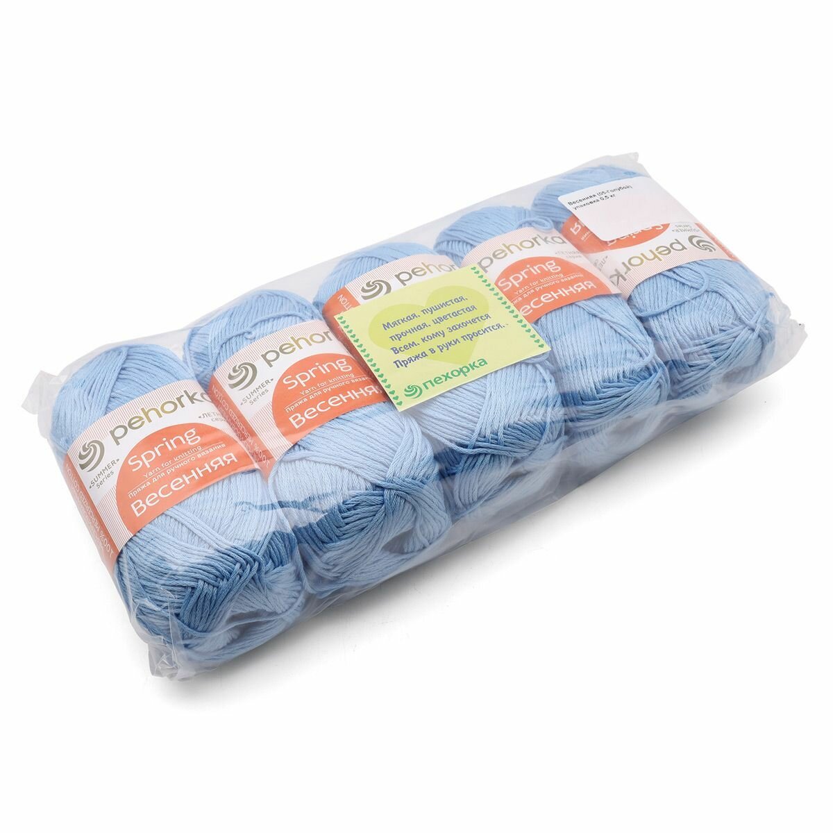 Пряжа для вязания Пехорка 'Весенняя' 100г, 250м (100% мерсеризованный хлопок) (05-Голубой), 5 мотков информация: