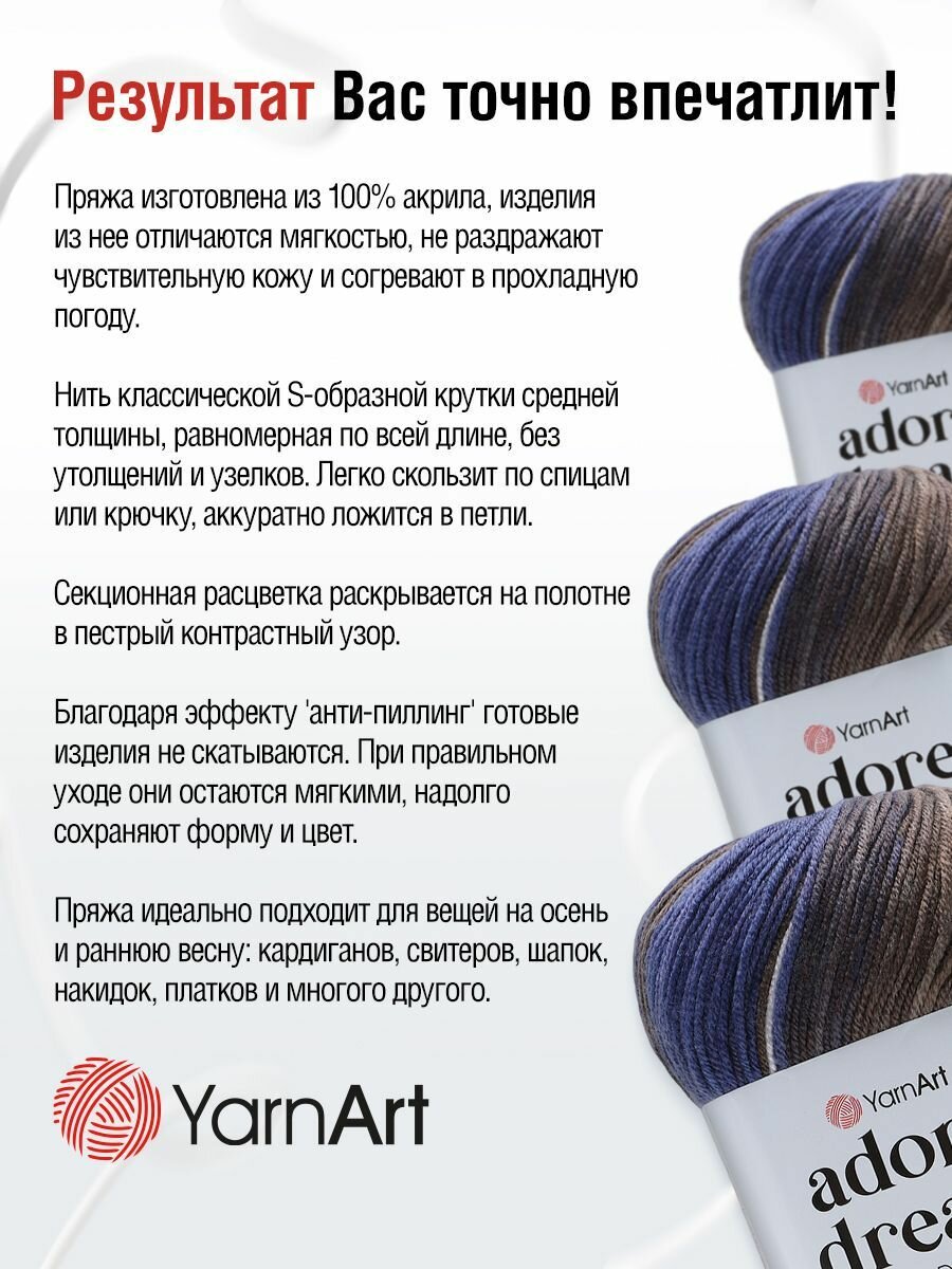 Пряжа для вязания YarnArt 'Adore Dream' 100г, 280м (100% акрил с эффектом анти-пиллинга) (1050 секционный), 5 мотков информация: