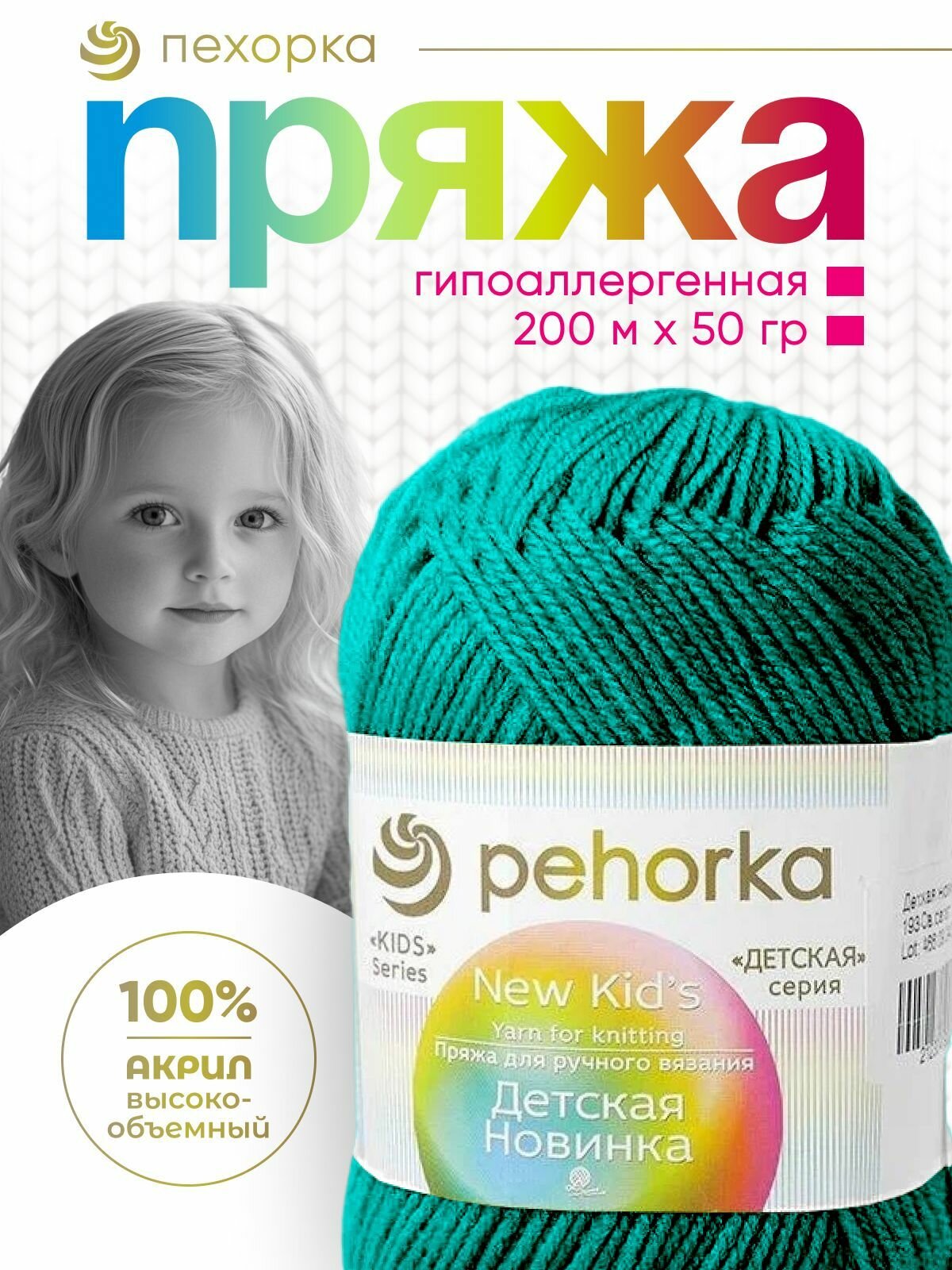 Пряжа Пехорка Детская новинка - 1 моток 583 бирюза 100% акрил высокообъемный 200м/50г