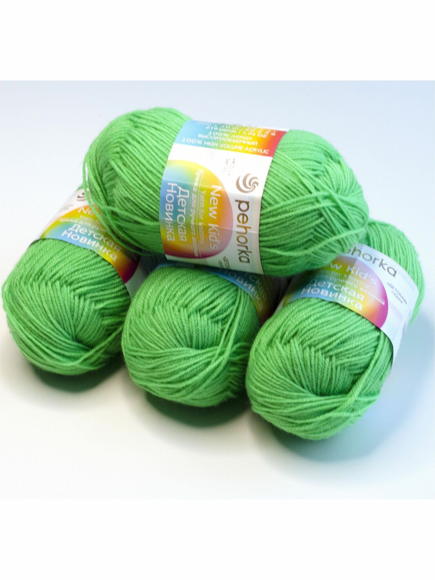 Пряжа Пехорка Детская новинка - 10 мотков 581 светлый изумруд 100% акрил высокообъемный 200м/50г