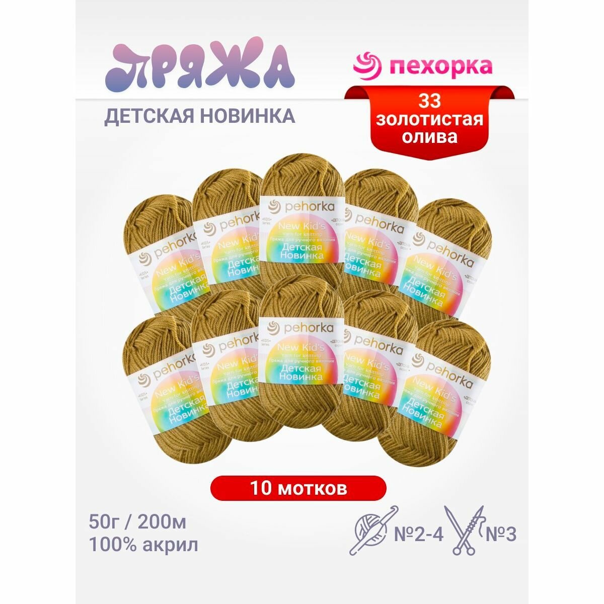 Пряжа детская для вязания Пехорка Pehorka Детская новинка, тонкая, акрил 100%, цвет 033, золотистая олива, 10 шт. по 50 г, 200 м