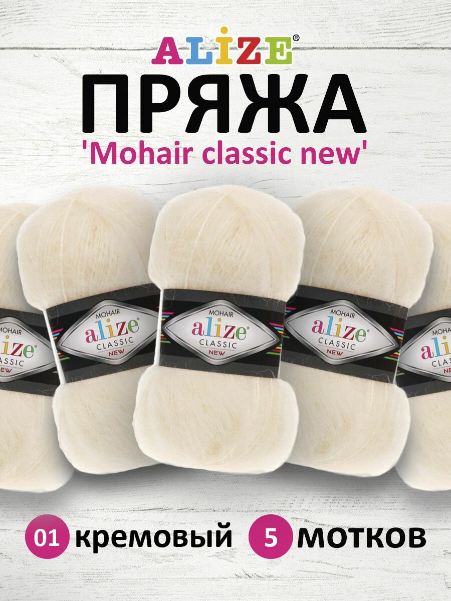 Пряжа Alize Mohair classik new (01 кремовый), 5 шт. по 100 г, Alize