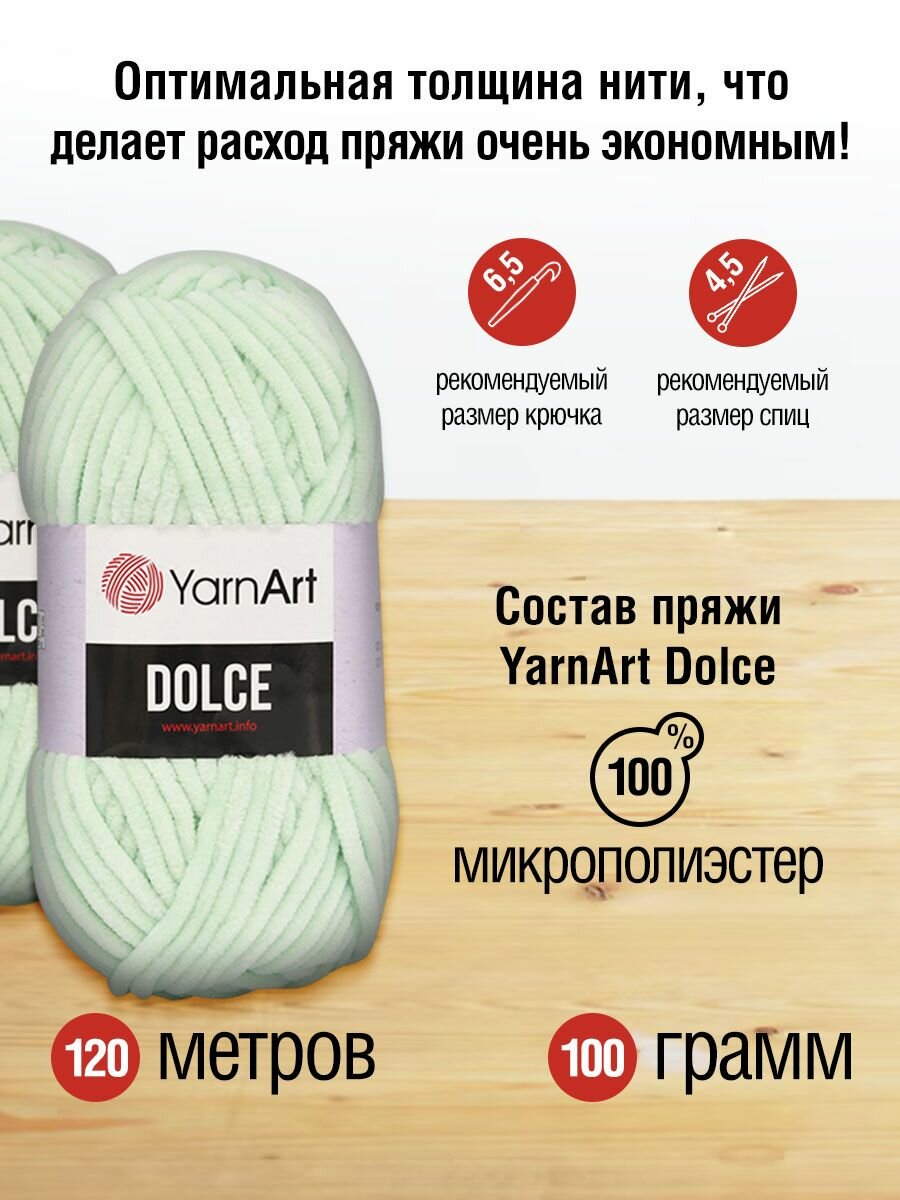 10 цен на Пряжа для вязания YarnArt 'Dolce' 100г, 120м (100% микрополиэстер) (753 мятный), 5 мотков