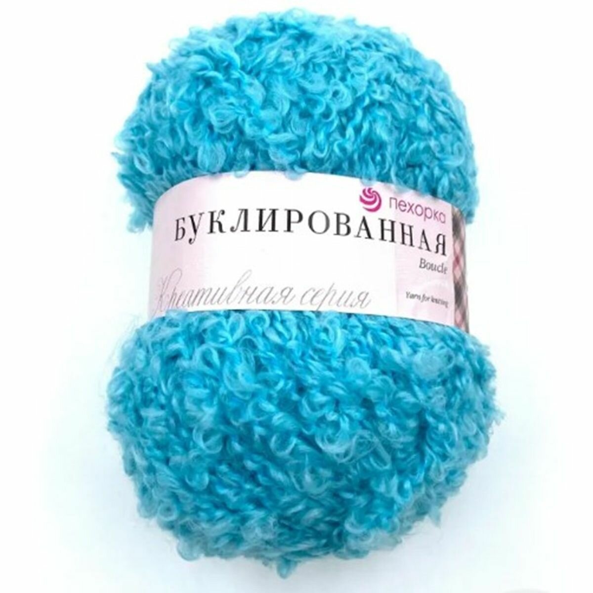 Пряжа Пехорка Буклированная 95 океан 30% мохер, 20% шерсть, 50% акрил 200г 220м 1шт