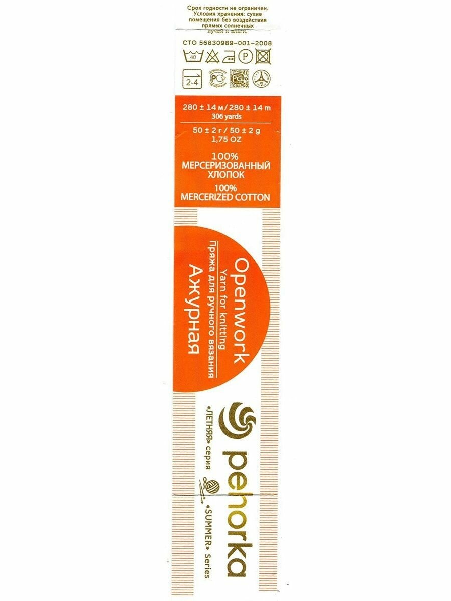 Пряжа Пехорка, Pehorka Ажурная, средняя, хлопок мерсеризованный 100%, цвет 393, светлый моренго, 10 шт. по 50 г, 280 м