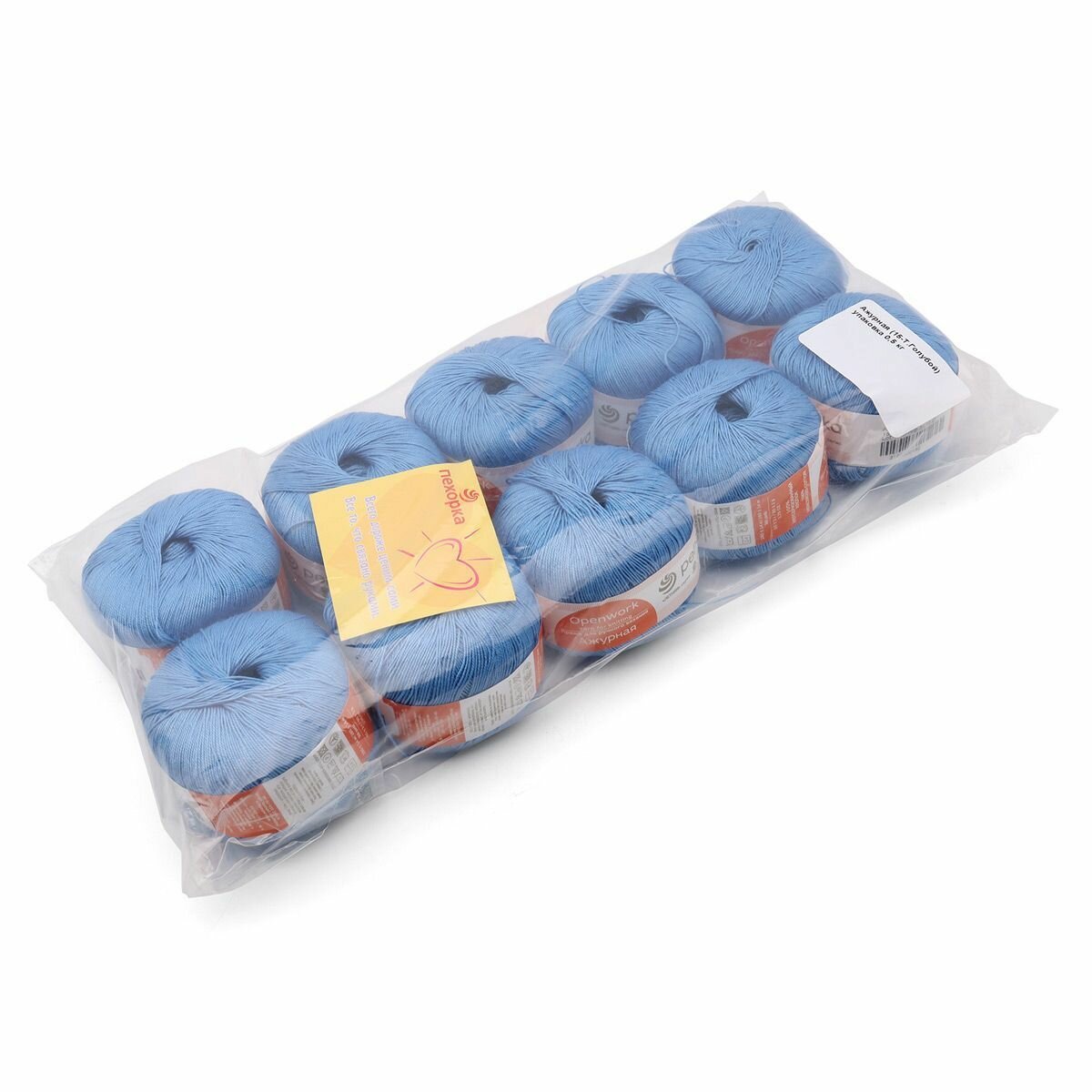 Пряжа Пехорка Pehorka Ажурная средняя, хлопок мерсеризованный 100%, цвет 005, голубой, 10 шт. по 50 г, 280 м