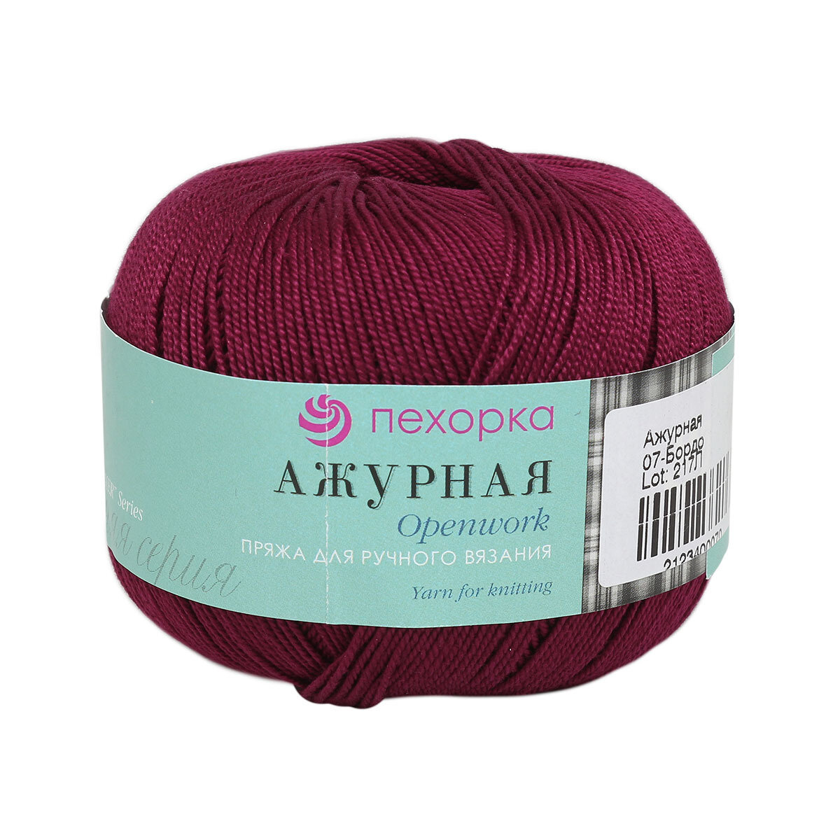 Пряжа для вязания Пехорка 'Ажурная' 50г, 280м (100% мерсеризованный хлопок) (07 бордо), 10 мотков информация: