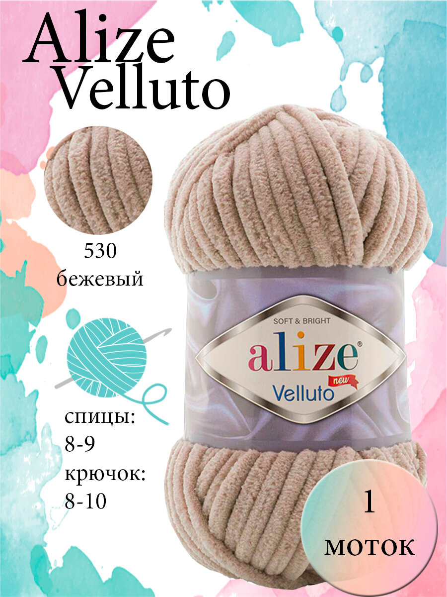 10 цен на Пряжа плюшевая Alize Velluto (Ализе Веллюто) цвет: 530(бежевый), 100г, 68м,1 шт
