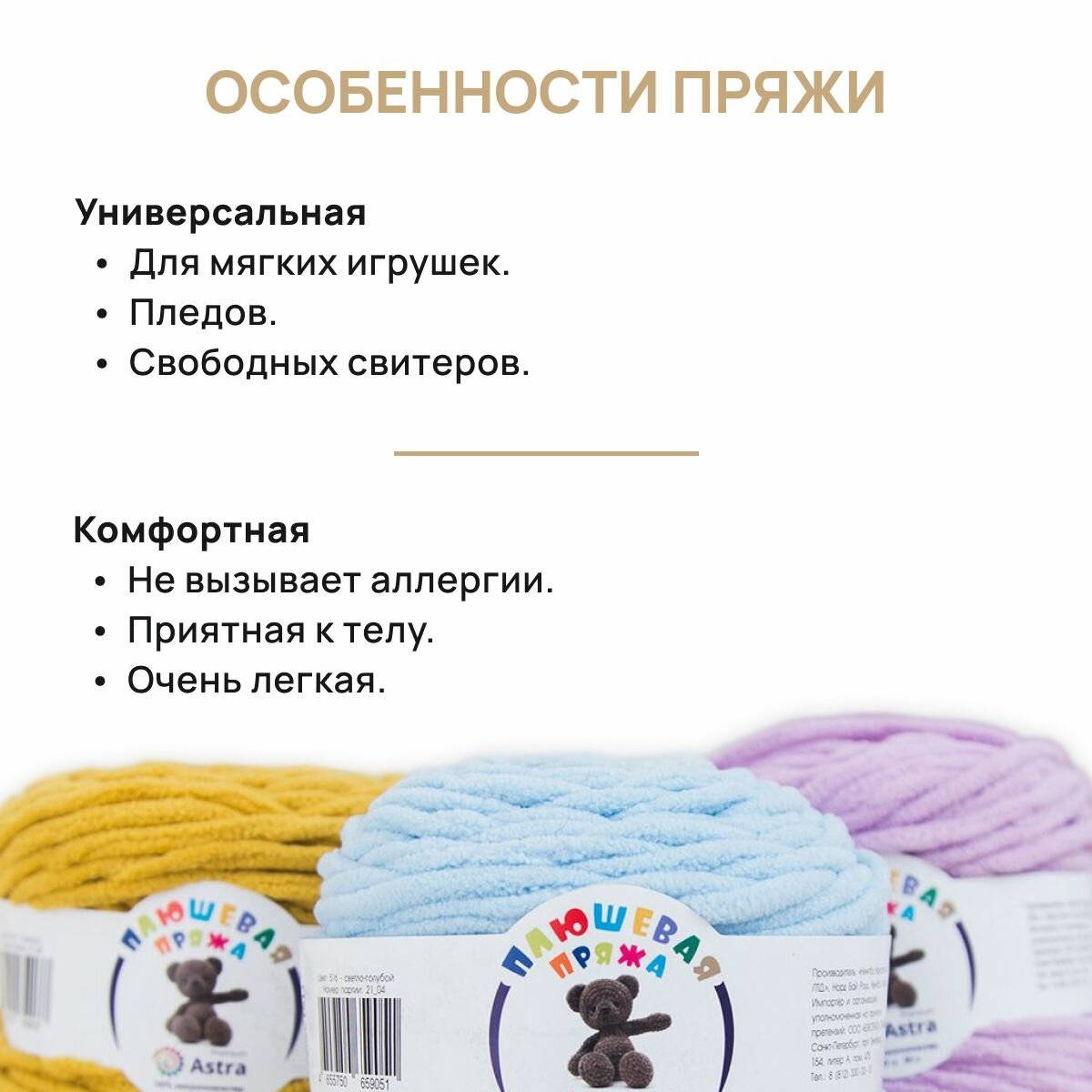 Пряжа для вязания Astra Premium 'Плюшевая' 100г, 80м (100% микрополиэстер) (516 светло-голубой), 2 мотка 525 ₽