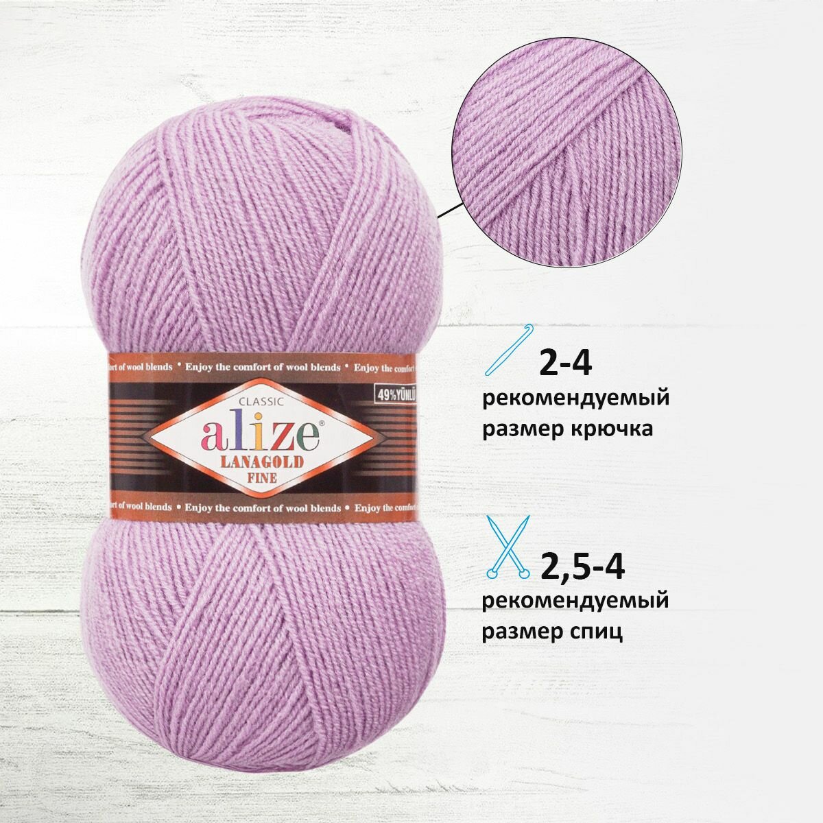 Отзывы на Пряжа для вязания ALIZE LANAGOLD FINE: 166 (лиловый), 5 шт 390 м 100 г, 49% шерсть 51% акрил