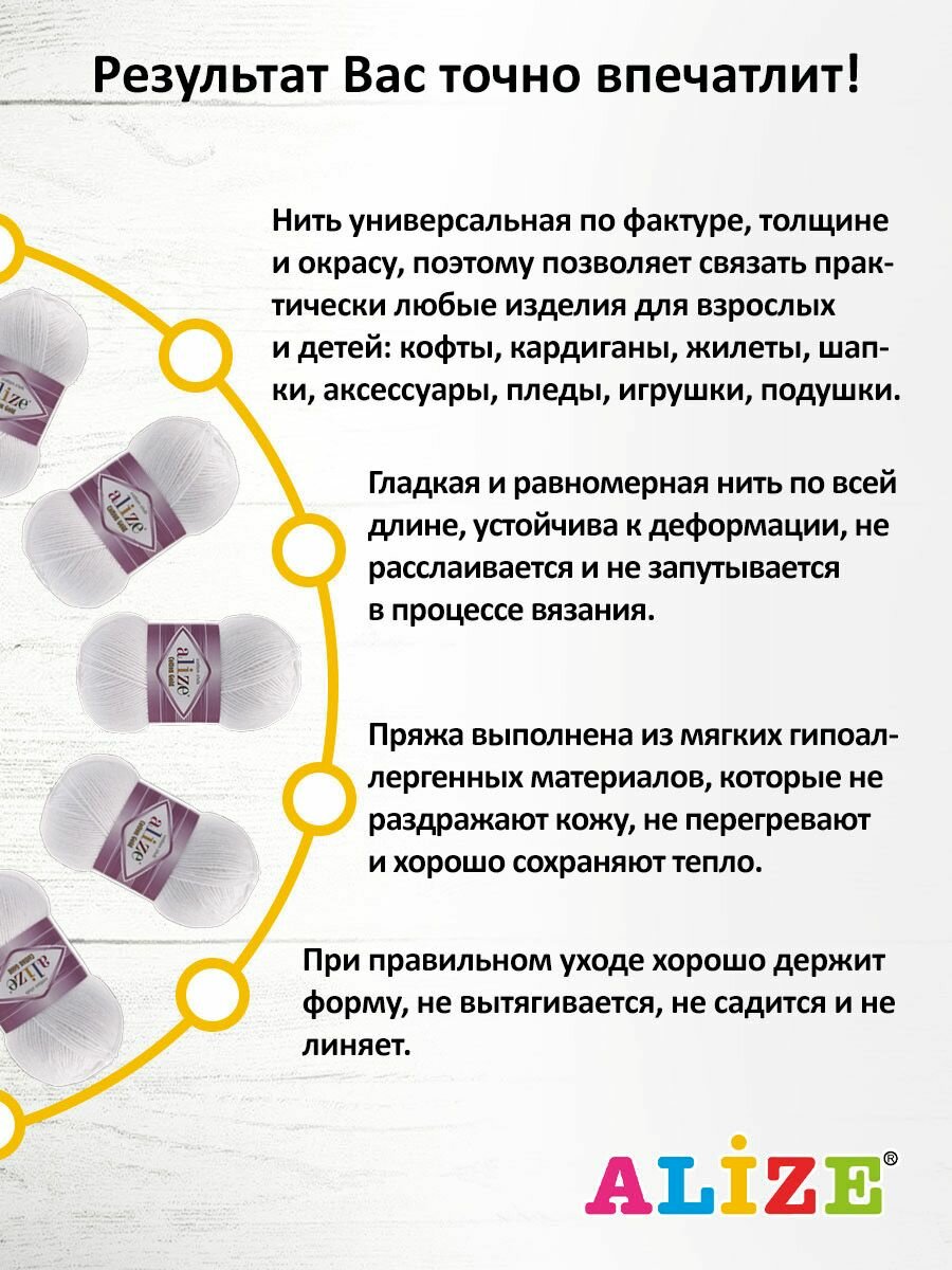 Пряжа для вязания ALIZE 'Cotton gold', 100г, 330м (55% хлопок, 45% акрил), ТУ (55 белый), 5 мотков информация: